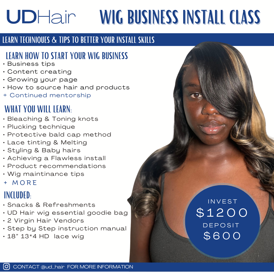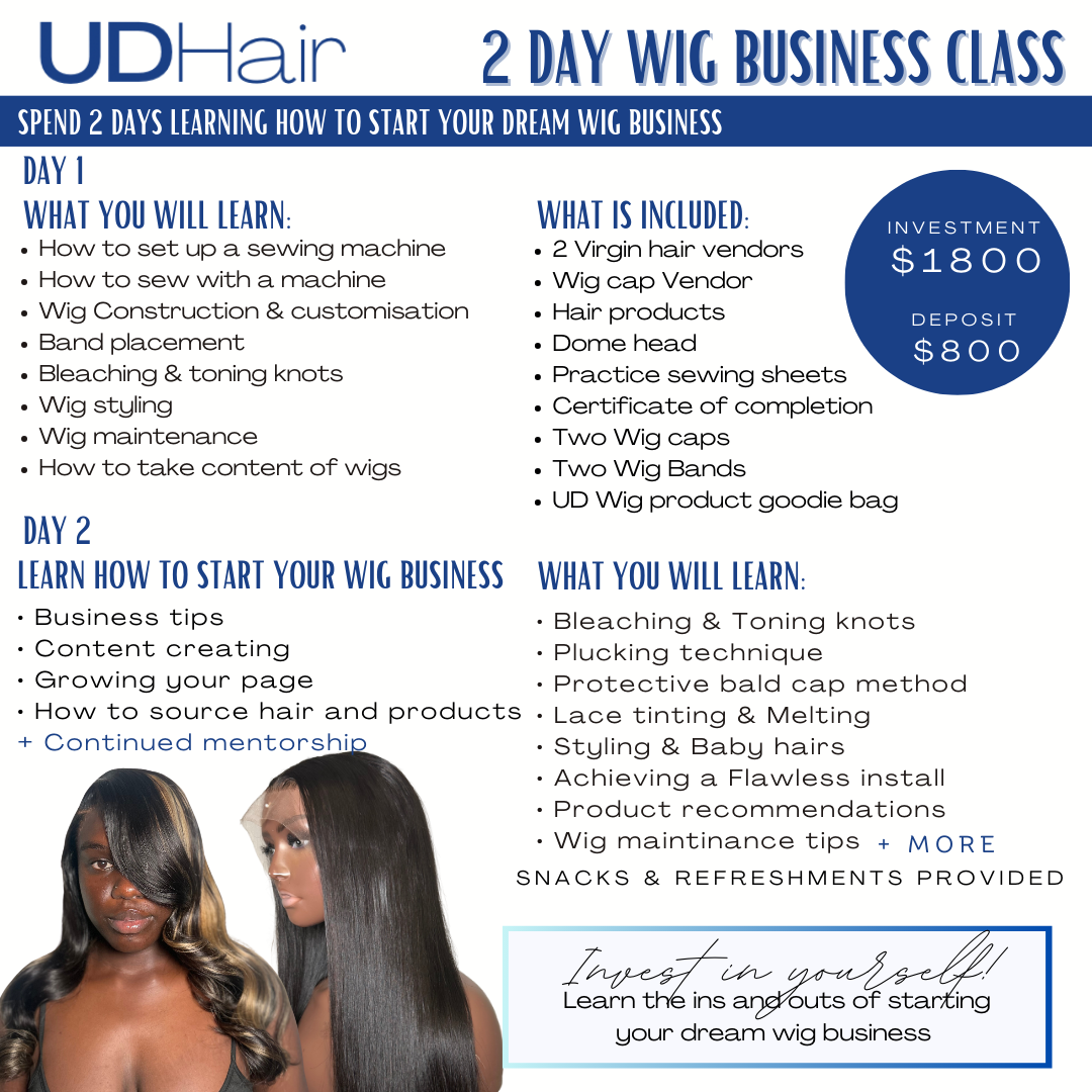 This class is an intensive business course created to help new and established business owners master wig and business theory, wig making, wig install and styling to help start or build your business.